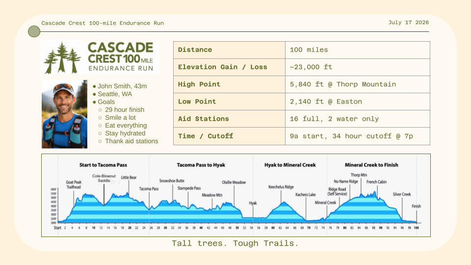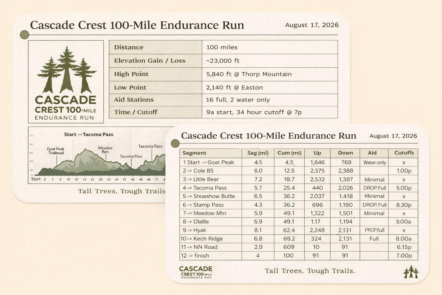 Run steady. Think clearly.Custom race pace cards built for trail and ultra runners.Segment splits.